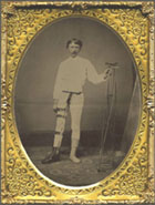 Before proceeding to the surgical section of the Medical and Surgical History of the War of the Rebellion, here is a portrait of a veteran who underwent amputation of the lower leg. He is modeling a prosthesis, and the image was probably used by an orthopedic salesman to market his wares.