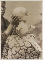 More comments on the Dr. Ikkaku Ochi collection. I wrote to Scalo , the publisher of this fine album of vintage clinical photographs which was put together by Akimitsu Naruyama and received permission to reproduce two of the plates. It was a difficult choice, but I selected two images of a case of hydrocephalus (pages 76 and 77). The unfortunate child is posed on her mother's lap and we see both a side and front view. Hydrocephalus images are extremely rare and it is even more exceptional to find a set portraying the same subject.