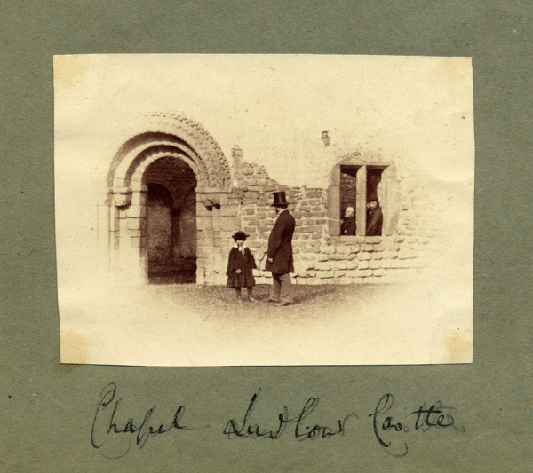 The photograph conveys a feeling of intimacy shared by a group of friends on a country outing, the conviviality of an afternoon spent exploring and photographing the ruins of Ludlow Castle where Milton wrote and performed a masque for the feast of Michaelmas in 1634. The three men and the one child in the picture can be seen relaxing as the sun declines, their spirits elevated by the charm of local larks. Moved by the intensity of ancestral moment, the friends are inspired to stage Milton's play for the camera and for audiences invisible. It is the last picture of the day.