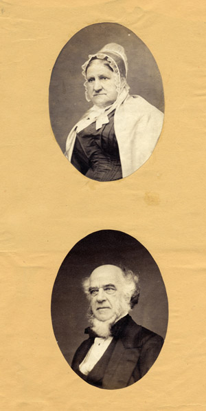 No photographer's name appears on any of the residue pages which is why Sotheby's sold the set as anonymous. However, Henry Peach Robinson can be identified with these two images of his parents – his mother Eliza (d. June 25, 1859) and his father John (d. February 7 1855). Plate 24 of Margaret F. Harker's monograph on Robinson shows a beautiful photographic portrait of Eliza Robinson, her youth lovingly restored by her son with heavy oil retouching. Details of this oil study and the above cameo are juxtaposed below. There is no photograph of Robinson's father in Harker, only an early drawing and another wonderfully hideous sketch of his mother. The mouths that Robinson gives his parents in those drawings are no wider then the breadth of their noses, a Freudian horror vacui which had abated a little by the time of the oil study. When comparing the two images below, the scholar should consider the possibility that the oil study is a composite of the face of Robinson's mother pasted onto the body of his wife (shudder).